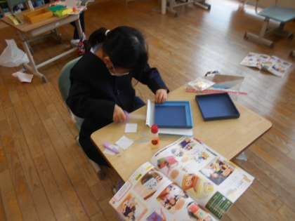 図画工作で、箱の中や外側を飾り付けしました。どの箱もきれいに飾り付けできました。