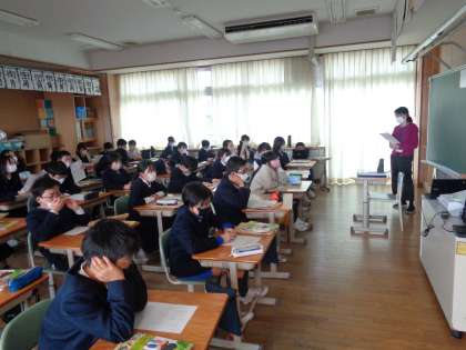 4つの候補曲の歌詞を読んだり、曲を聴いたりして卒業式に歌う歌を決めています。自分たちの思いが卒業式で伝わるように、考えながら聴いている様子が見られました。小学校生活最後の集大成である卒業式に向けて、少しずつ動き始めます。