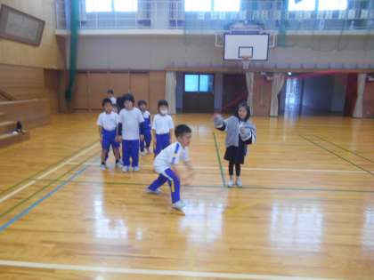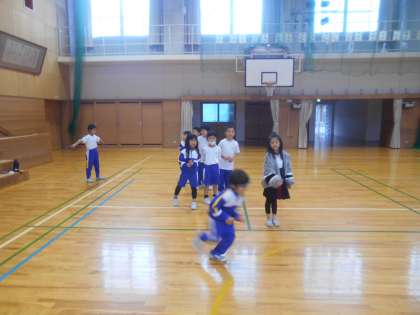 体育の時間に縄とびをがんばっています。短縄での前とび、長縄とびを練習しています。