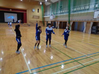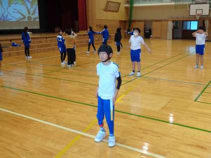 今回が本番前最後の練習でした。大きなスクリーンに映した映像を見ながら、振り付けを確認する子供たちでした。