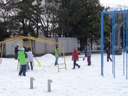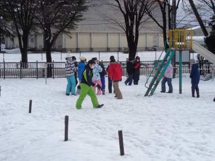 体育の時間には、雪遊びをしました。寒い中でしたが、汗をかくくらい動き回っていました。あと3日元気に登校できるよう汗の始末や手洗いに気をつけましょう。