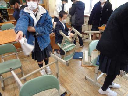 終業式後に2学期のがんばりを伝えながら、「あゆみ」を手渡しました。3学期はさらに飛躍できるように、期待しています。最後は、教室の机の脚の裏を拭きました。教室や下駄箱がきれいだと、3学期のスタートは気持ちよくスタートできますね。ありがとう。