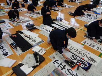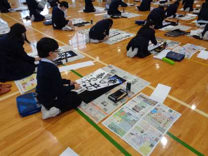 今日から3学期が始まりました。久しぶりに友達と会い、楽しそうな様子が教室で見られました。書き初め大会では、練習の成果を出そうと頑張っていました。3学期のよいスタートになりました。