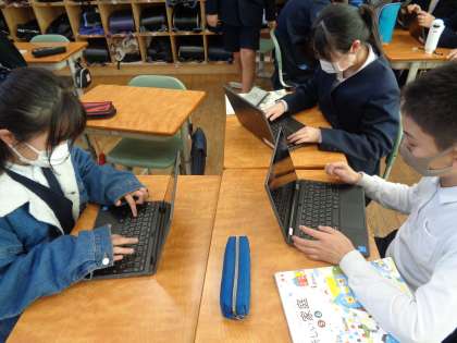 国語の時間には、選んだ詩をどのように朗読するかを考え、実際に朗読をグループの友達に聞いてもらいました。間、強さやつながりを考えて、読む姿が見られました。