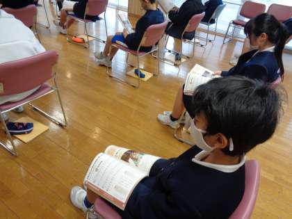 1月23日(月) 6年生 創校記念の歌、雅楽「越天楽」の学習