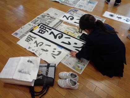 県大会に向けて練習をしました。お手本をよく見て、どうしたら上手に書けるか考えながら、一生懸命に書いていました。