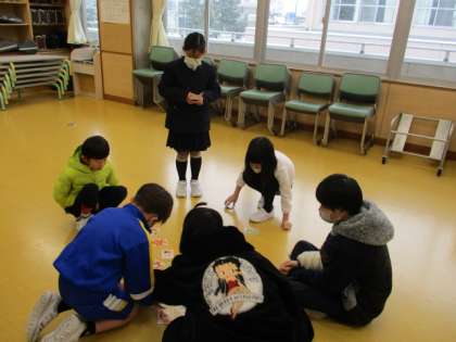 トランプやカルタ等、ファミリー班の仲間と楽しく遊びました。ファミリー活動を楽しみしている子供が多く、いろいろな場所から大きな笑い声が聞こえてきました。
