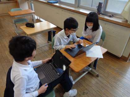 3年生に委員会について紹介するために準備をしています。紹介用のスライドや原稿などを協力して作っています。