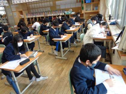 国語のテスト「メディアと人間社会」、理科「水溶液の性質とはたらき」のテストを行いました。