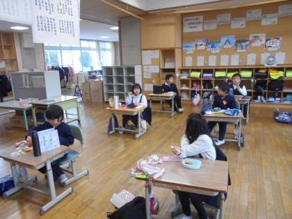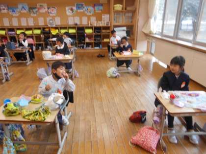 今日の昼食は、家から持ってきたお弁当の日でした。みんなおいしく食べていました。