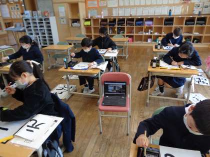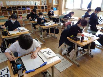 穂先の向きや始筆・終筆に気を付けながら、ていねいに書いていました。