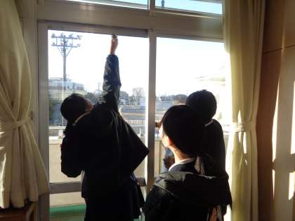 6年間お世話になった学校がきれいになるように、朝の時間を使って校内の掃除をしています。窓ガラスの高いところまで、新聞紙で拭いたり、水拭きに取り組んだりしています。