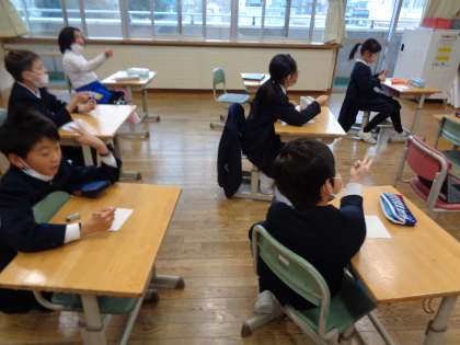 真剣にじゃんけんをしながら、漢字を書き進めていました。