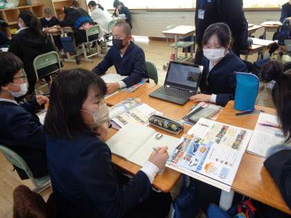 社会科の時間に世界の国々の文化や暮らしについて調べたことを、スライドでまとめ、発表をしました。自分の調べたい国の学校生活や食文化等を友達に伝えたり、友達の発表から新しい発見を見付けたりしていました。