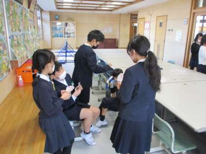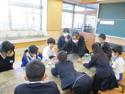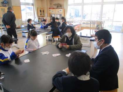 ファミリー班でトランプや百人一首、だるまさんが転んだ等、なかよく、楽しく活動しました。6年生と一緒に活動できるのもあと少しになりました。