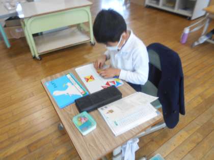 いろいたを ならべて、いろいろな形をつくりました。楽しみながら取り組みました。