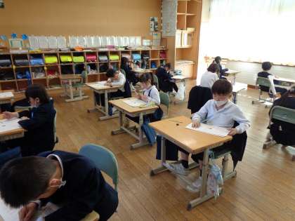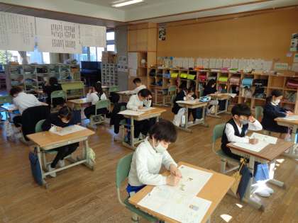 月日が経つのが早いことに、もうすぐ2年生も終わりに近づいています。そこで、昨日から2日間かけて、学習のたしかめテストを行いました。2年生で学習したことを振り返り、どれだけ理解できているか把握するためのテストです。みんな頭を悩ませながら、最後まで諦めず取り組んでいました。