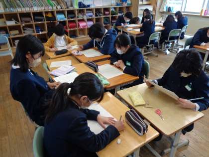 自分のおすすめの本を紹介する文章を友達と読み合いました。おもしろおかしく書かれた紹介文を読んで、様々な本に興味をもった様子でした。