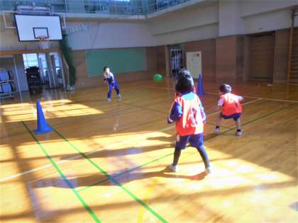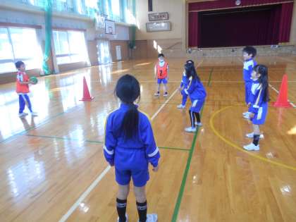 体育でドッジボールをしました。ルールを確認しながら行っています。