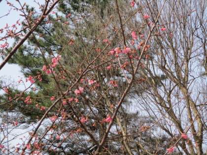 創校150周年記念で寄贈していただいた「河津桜」の花が咲きました。濃いピンクの花はとてもかわいらしく、きれいです。ぜひ、見に来てください。