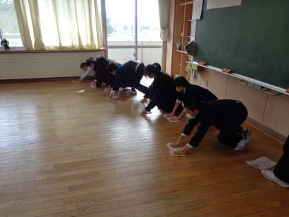 のこり6日。今日は、ワックスがけのために教室の水拭きを行いました。2年間使った教室に感謝の気持ちをもって、取り組めました。