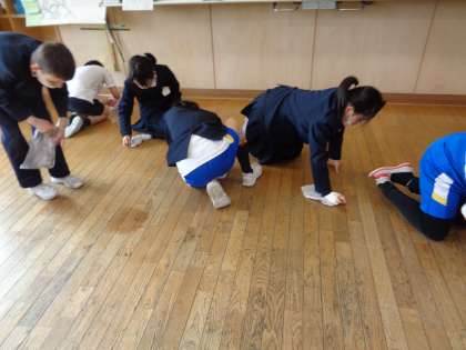 すみずみまで手を伸ばして拭いたり、みんなで協力して床を拭いたりしました。