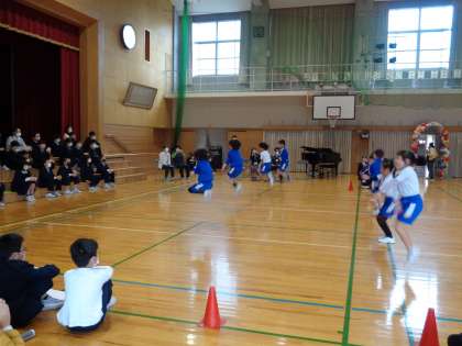 6年生の卒業をお祝いするために、2年生からはリズムなわとびの発表を行いました。2学期末から練習を重ねてきた集大成が詰まった発表になり、子供たちもやりきった表情でした。また、6年生さんの手拍子が応援になり、失敗しても諦めない姿を見ることができました。