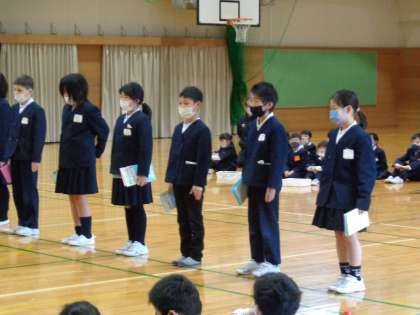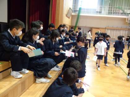 卒業を祝う集会では、6年生に向けてメッセージカードをプレゼントしました。
