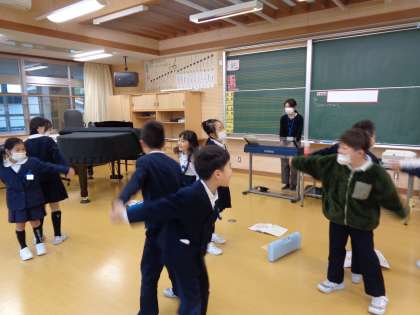 音楽科「わらべ歌」の授業では、「なべなべそこぬけ」をしました。ペアを作り、音に合わせて楽しそうに体を動かしていました。次は3人、4人と人数を増やして取り組んでみたいですね!