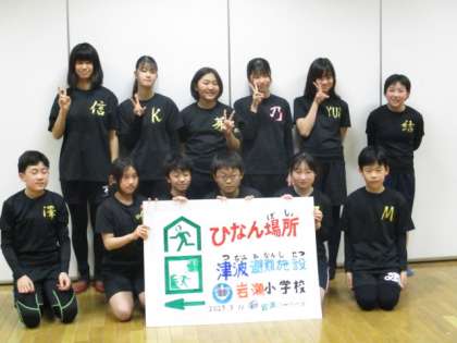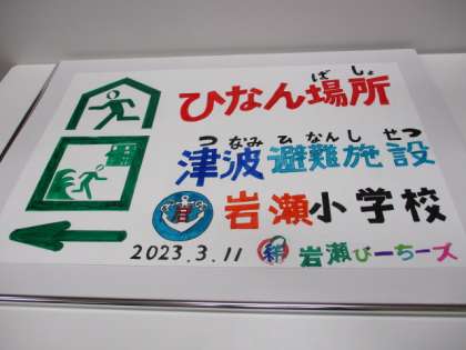 岩瀬びーちーズの子供たちが、手作りの「避難所看板」をつくってくれました。2月の防災教室で防災士さんが「小学校が避難場所だと分かるように、子供の目線に看板を設置することが必要です」と話されたことを受けて、びーちーズの子供たちが作ってくれました。
