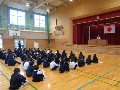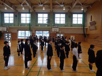 各学年の代表児童1名が校長先生から修了書を授与されました。校長先生のお話から、子どもたちは、1年間でできるようになったことやがんばったこと振り返っていました。新しい学年に進級しても、今続けていることや目標を「つなげ」ていってくださいね。