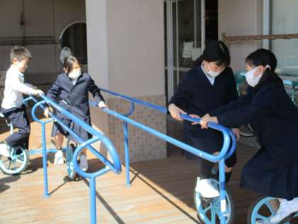 とてもよい天気で、休み時間には外で遊ぶ子供たちの姿が見られました。
