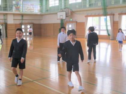 体育館では、5年生が元気に鬼ごっこをしていました。いつもなかよしな5年生です。