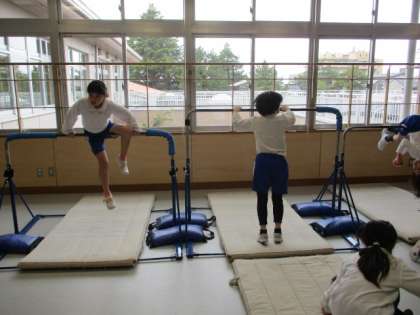 ワークスペースでは、3年生が鉄棒に挑戦していました。逆上がりも上手にできてすばらしいです。