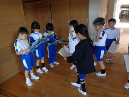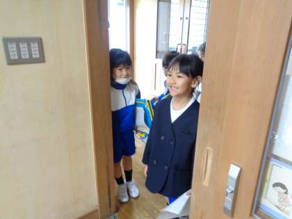 1,2年生で「学校たんけん」をしました。2年生が1年生に校内を案内したり、保健室や職員室に入る練習を一緒にしたりしました。活動後、1年生が「『学校たんけん』、楽しかった」「2年生が教えてくれてうれしかった」と感想を伝えました。それを聞いた2年生も、お兄さんお姉さんとして、とても誇らしい表情をしていました。