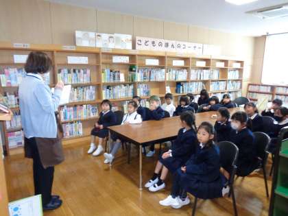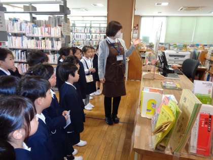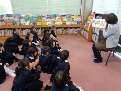 図書館での過ごし方や本の借り方の話を聞いたり、読み聞かせを聞いたりしました。たくさんの本から借りたい本を見つけ、自分で借りることもできました。