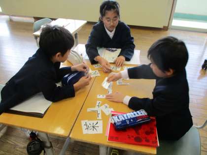 今日は国語の時間に、漢字の組み立てについて学習しました。漢字の色々な部分の名前を学び、班で協力して漢字パズルに挑戦しました。友達と話し合いながら頑張って問題に取り組みました。