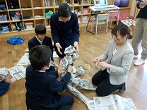 桃組の生活単元では、みんなで協力して、新聞紙を積み重ね、目標とした「担任の先生の身長を超える」を見事達成しました。笑い声の絶えない、楽しい時間になりました。