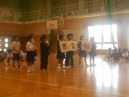 2年生は、出し物で「世界中のこどもたちが」という歌を元気いっぱいに披露しました。また、1年生へのメッセージも、一人一人大きな声ではっきりと言うことができました。