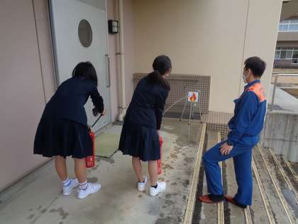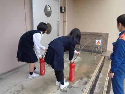 その後、防火・防災教室の一環として、119番通報の訓練や水消化器を使用した消火訓練等に取り組み、さらに防火・防災への意識を高めました。
