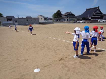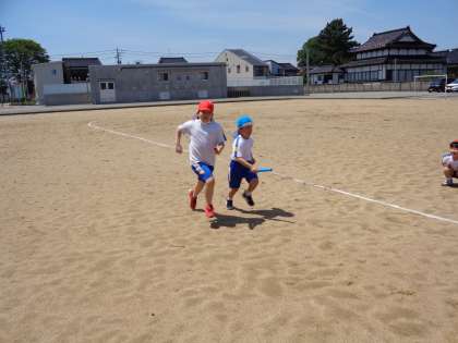 今日は、1年生と2年生でリレーの練習をしました。