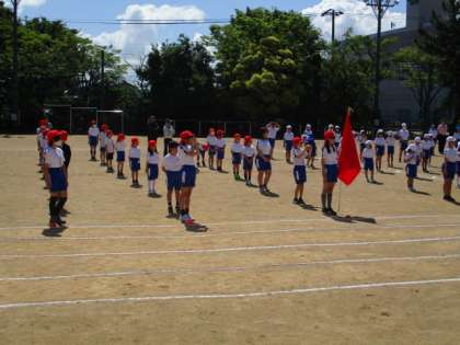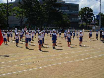 27日(土)のスポーツフェスティバルに向けて、全校で開閉開式の練習をしました。