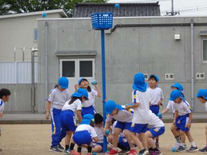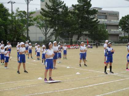 今日はスポーツフェスティバルの予行練習でした。他の学年の競技の様子を見て応援する姿がたくさん見られました。