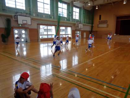 体育科の授業で「シャトルラン」を行いました。 疲れても、最後の力を振り絞って頑張って走りました。