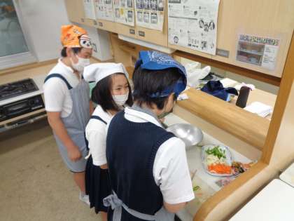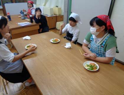 今日の家庭科では、野菜炒めを作る調理実習を行いました。班の仲間と協力して材料を切り、しっかりと炒めて完成させていました。