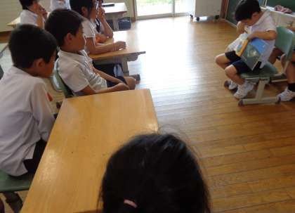 本係の2人が読書タイムに読み聞かせをしてくれました。みんな真剣に物語を聞いています。