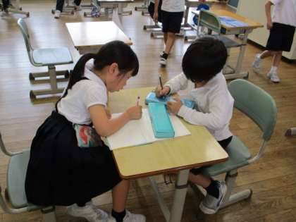 2年生は、集会の準備をしていました。言葉を考えたり、出し物を決めたり、友達と相談しながら進めていました。