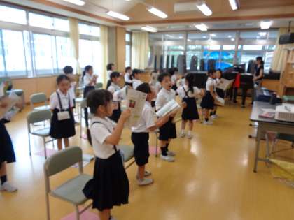 音楽の授業は、音楽室で行っています。
