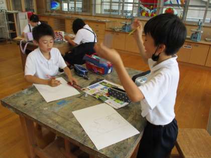 4年生は、図画工作で想像を広げて「花」の絵を描いています。