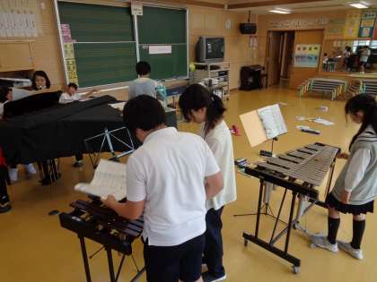 子供たちは現在、2つの班に分かれて合奏練習を行っています。